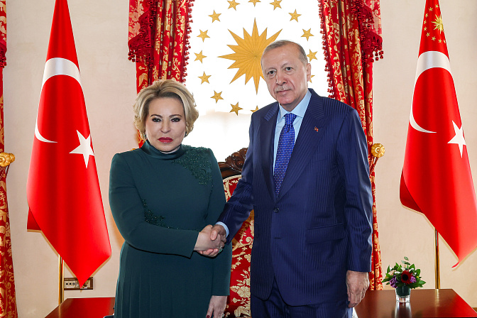 В феврале прошлого года, на переговорах с Эрдоганом в рамках официального визита делегации Совета Федерации в Турцию, Матвиенко отметила, что президент Республики полностью погружён в двустороннюю повестку, и они обсуждали не только дальнейшее развитие отношений двух стран, но и говорили о проблемах, которые сдерживают это развитие с учётом санкций, ограничений. «Мы спокойно, в рабочем режиме находим решение всех вопросов», — подчеркнула Матвиенко.